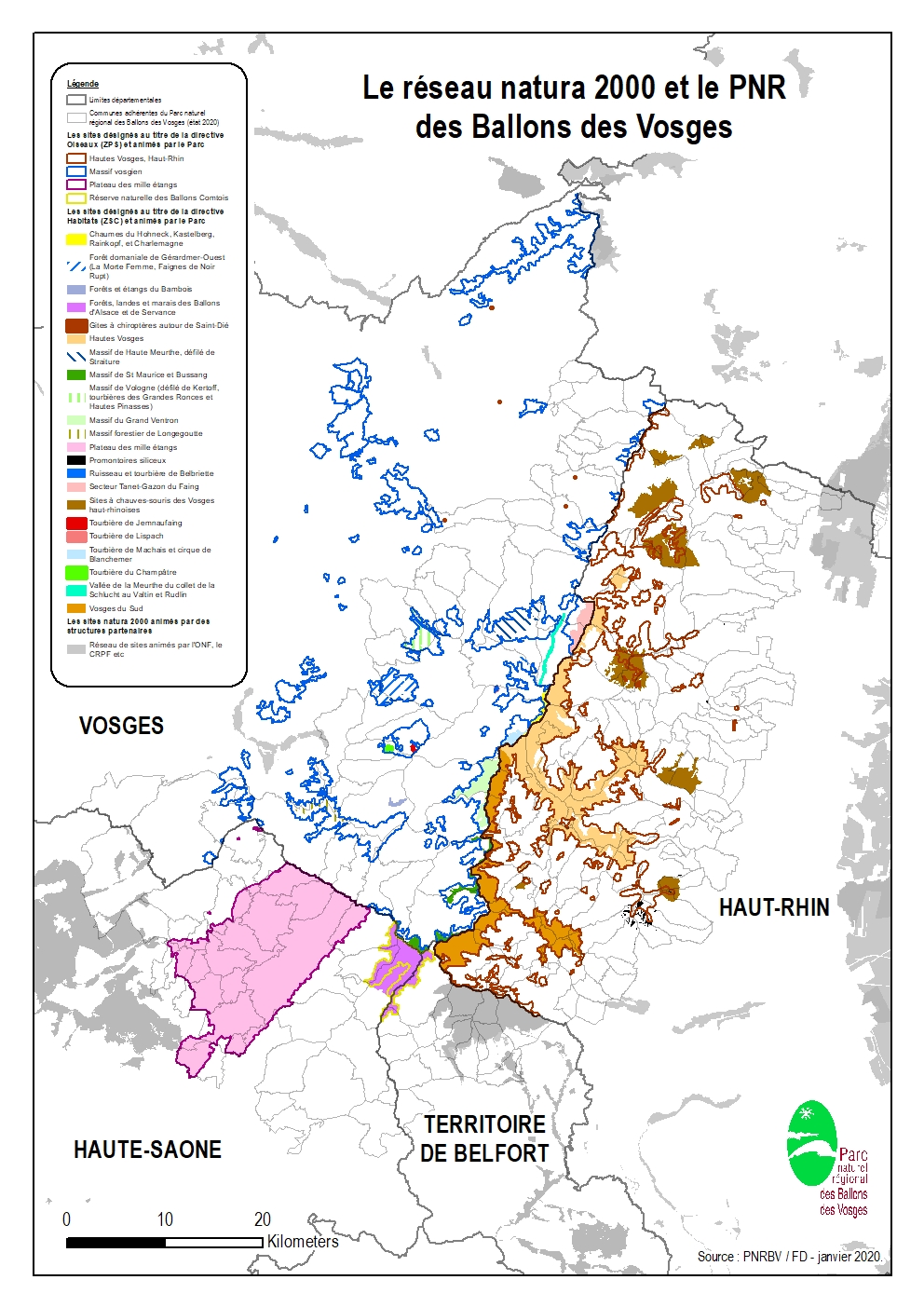 Le territoire du Parc naturel régional des Ballons des Vosges abrite tout ou partie 34 sites natura 2000 :