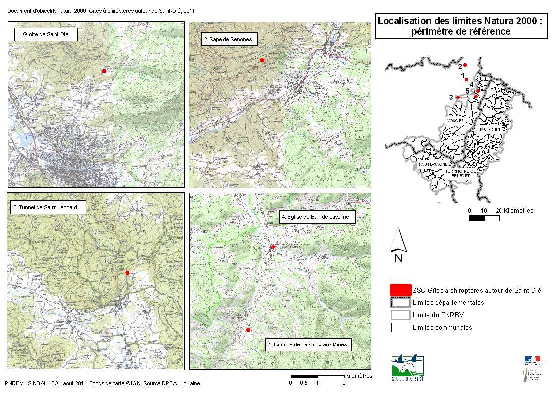 Ce site regroupe 5 gîtes à chauves souris (chiroptères) répartis sur 5 communes différentes :